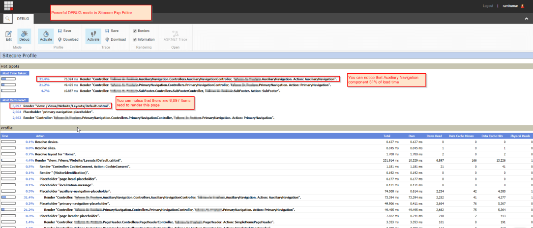 As a developer, you would need design and implement the components in a way that it doesn’t affect the performance. Sitecore’s Debug mode helps you to check if the components are performing to its optimal level. Google has indicated site speed is one of indicator for search ranking. Google might be specifically measuring time to